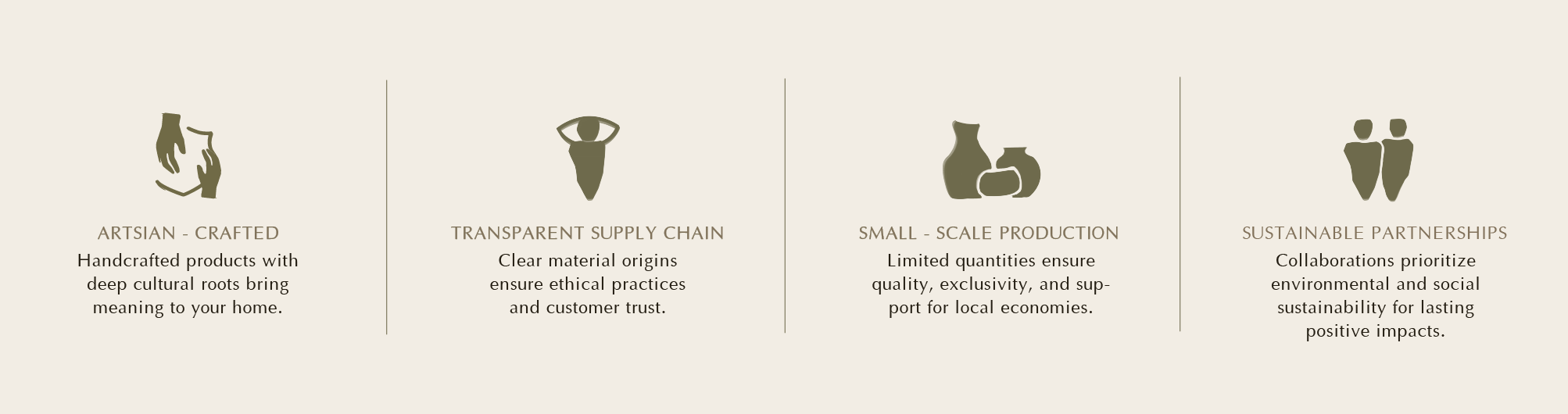 Our designs blend natural shapes, materials, and centuries-old techniques with a contemporary spirit. We respect tradition, but not as museum pieces — we bring craftsmanship into today, combining it with modern ideas to preserve, renew, and elevate heritage. Each creation is a balance of nature and humanity, carrying its own story into modern homes